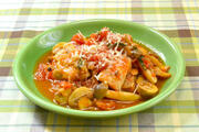 鶏もも肉 塩 こしょう ニンニク 玉ねぎ きのこ バジルの葉 オリーブ油 ホールトマト缶 【A】 顆粒コンソメの素 塩 こしょう   粉チーズ