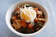 鶏ミンチ肉 長芋 [A] 溶き卵 おろししょうが 片栗粉 酒 塩 サラダ油 しょうゆ みりん 温泉玉子 七味唐辛子