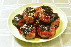 豚こま切れ肉 焼き海苔(12切り) 塩 こしょう 片栗粉 油 【A】 砂糖 みりん しょうゆ 酒 白ごま ※作りやすい分量(2〜3人分)です。