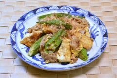 おくら 卵 木綿豆腐 豚こま切れ肉 油 【A】 しょうゆ 酒 鶏がらスープの素   かつお節   ※作りやすい分量です。