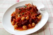 さば にんにく 玉ねぎ 豆(今回はレッドキドニーとひよこ豆のドライパック) オリーブ油 ホールトマト缶(カットタイプ) 白ワイン 顆粒コンソメの素 水 ウスターソース 塩 こしょう パセリのみじん切り