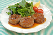 牛薄切り肉 水溶き小麦粉 塩 こしょう サラダ油 ステーキのタレ(市販品) ベビーリーフ ミニトマト レモン ※作りやすい分量(約2人分)