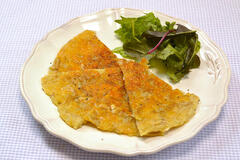 サーモン(刺身用) 塩 こしょう 小麦粉 溶き卵 パン粉 紫玉ねぎ きゅうり ゆで卵 ケイパー レモン汁 マヨネーズ 塩 こしょう オリーブ油 パセリのみじん切り ※作りやすい分量です。