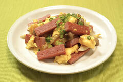 ランチョンミート しめじ 卵 マヨネーズ 油 塩 こしょう 刻みねぎ